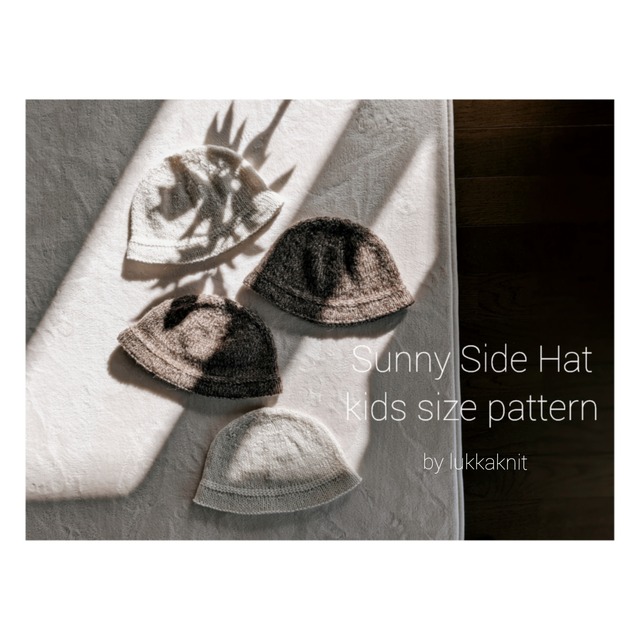 ◯ Sunny Side Hat 別名:ひなた帽 キラキラした光の中で、好奇心いっぱいの子どもたちの帽子。 ◯ キッズバケットハットの 棒針編み日本語文章パターンです。 トップダウンで編んでいくので頭に被せながら編むことができます。 表編み、裏編み以外の技法は動画にしていますので、初心者のかたや 編み物の経験が浅い方でも挑戦しやすいかと思います。 シンプルなパターンですので、経験者の方なら1日で編めると思います。 ※このパターンはマジックループを使います。 サイズはワンサイズ。3歳〜8歳くらいです。(お子さまの頭のサイズで前後します) 深さや糸の太さを変えることで やや大きめ、小さめにできますので、ぜひお子さまぴったりにアレンジされてみてください。 また、冬だけでなく コットン糸や夏糸などで編んでも♡ 糸を引き揃えたり、カラーを変えることでも 表情が変わるので、 指定糸にこだわらず ぜひお好きな糸でハンドニットを楽しんでください。 (サイズが大幅に変わる可能性があるので、大きさをアレンジしない場合はゲージは合わせてください。) ■道具■ ・糸(ハマナカsonomonoアルパカウール並太40g) ※パターンより大きめに作りたい方は多めにご用意ください。 ・長さ80cm以上の4.5mm/US7、日本規格8号の輪針 ・目数リング・段数マーカー各1個ずつ ・とじ針 ・メジャー ■ゲージ■ 18目26段 ■平置きサイズ■ 縦17cm 横22cm ※この商品は完成品ではありません。 ※スマートフォンでうまくDLできない場合は、PCからお試しください。 ※This pattern is written in English only for knitting abbreviations and in Japanese for the main part. It's not an English pattern. ※For the English pattern, go to Ravelry; look for the link in my Instagram profile section!