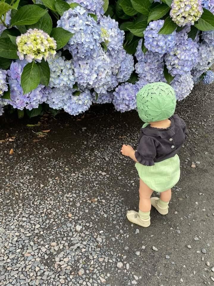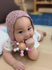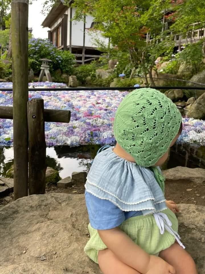 天使の羽根のような模様のベビー&キッズボンネット帽子です。